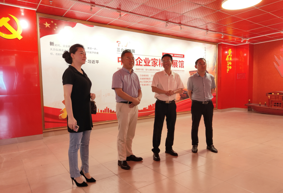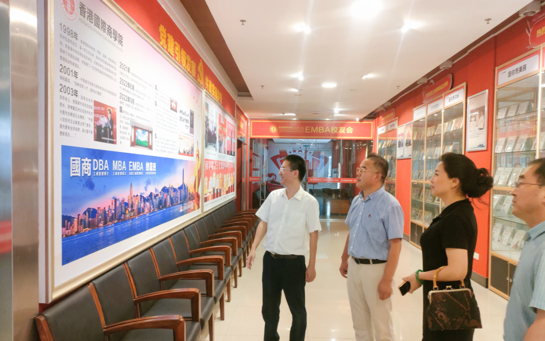 傅开虎董事长一行参观之后,对香港国际商学院的企业文化、校园文化深深感动,纷纷在展厅前合影留念。
